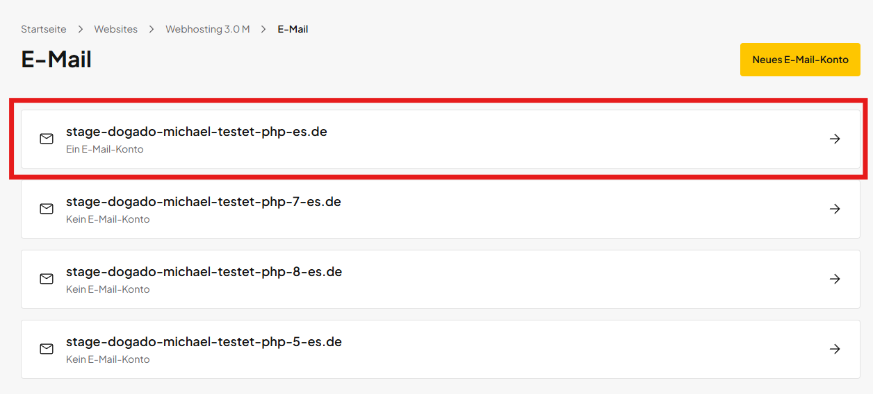 Anschließend klicken Sie links auf E-Mail (3). Im darauffolgenden Screen klicken Sie auf die Domain, unter welcher die entsprechende Mail-Adresse angelegt ist.