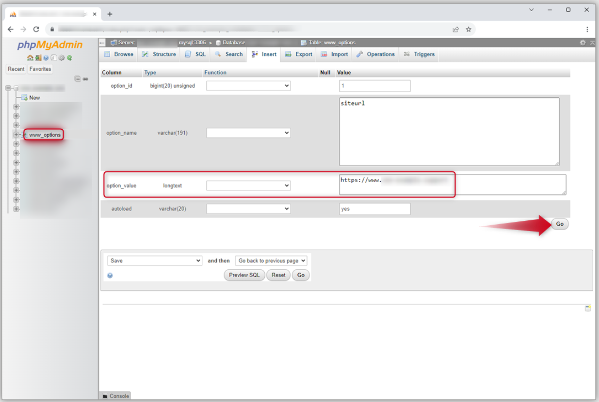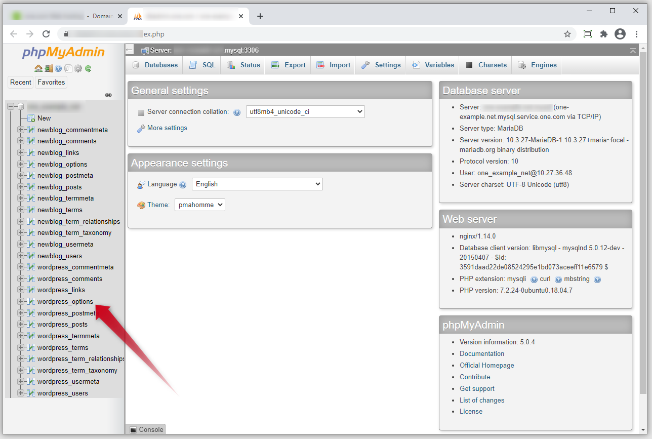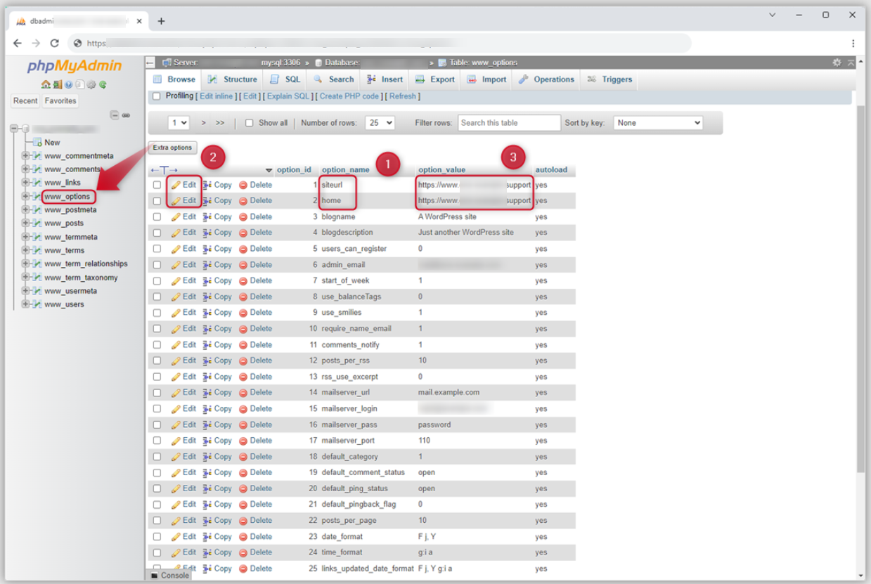Schritt 1 - Öffnen Sie die Tabelle "options" in Ihrer Datenbank
