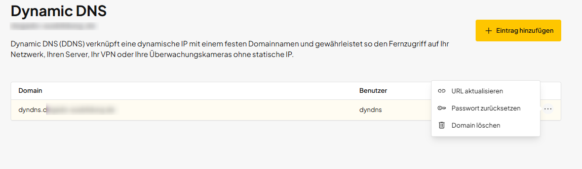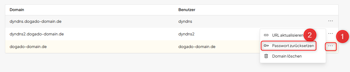 Klicken Sie beim bestehenden DynDNS-Eintrag auf die drei Punkt, um ein neues Passwort generieren zu lassen.