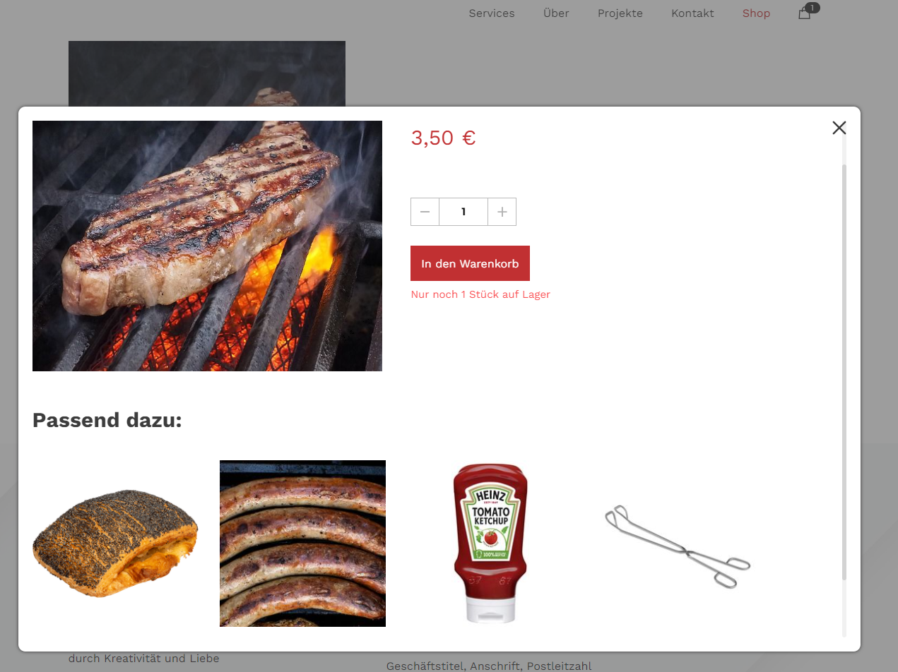 Sobald die verwandten Produkte aktiviert sind, werden diese direkt unter dem jeweiligen Produkt in der Detailansicht angezeigt. Hierbei wird Die Kopfzeile verwendet, die Sie zu Beginn als "Auswahltitel" eingegeben haben.