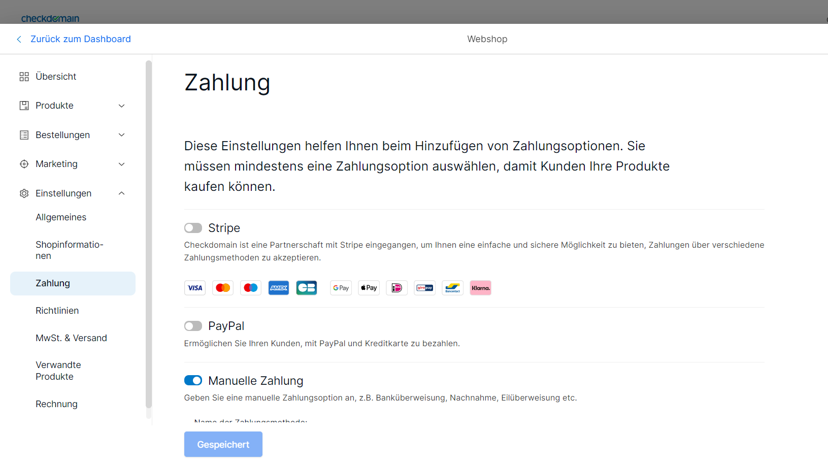 Bei der Einrichtung Ihres Webshops können Sie folgende Zahlungsmethoden wählen: