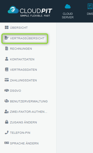 Klicke Sie nach dem Login im Menü links auf Ihre Vertragsübersicht: